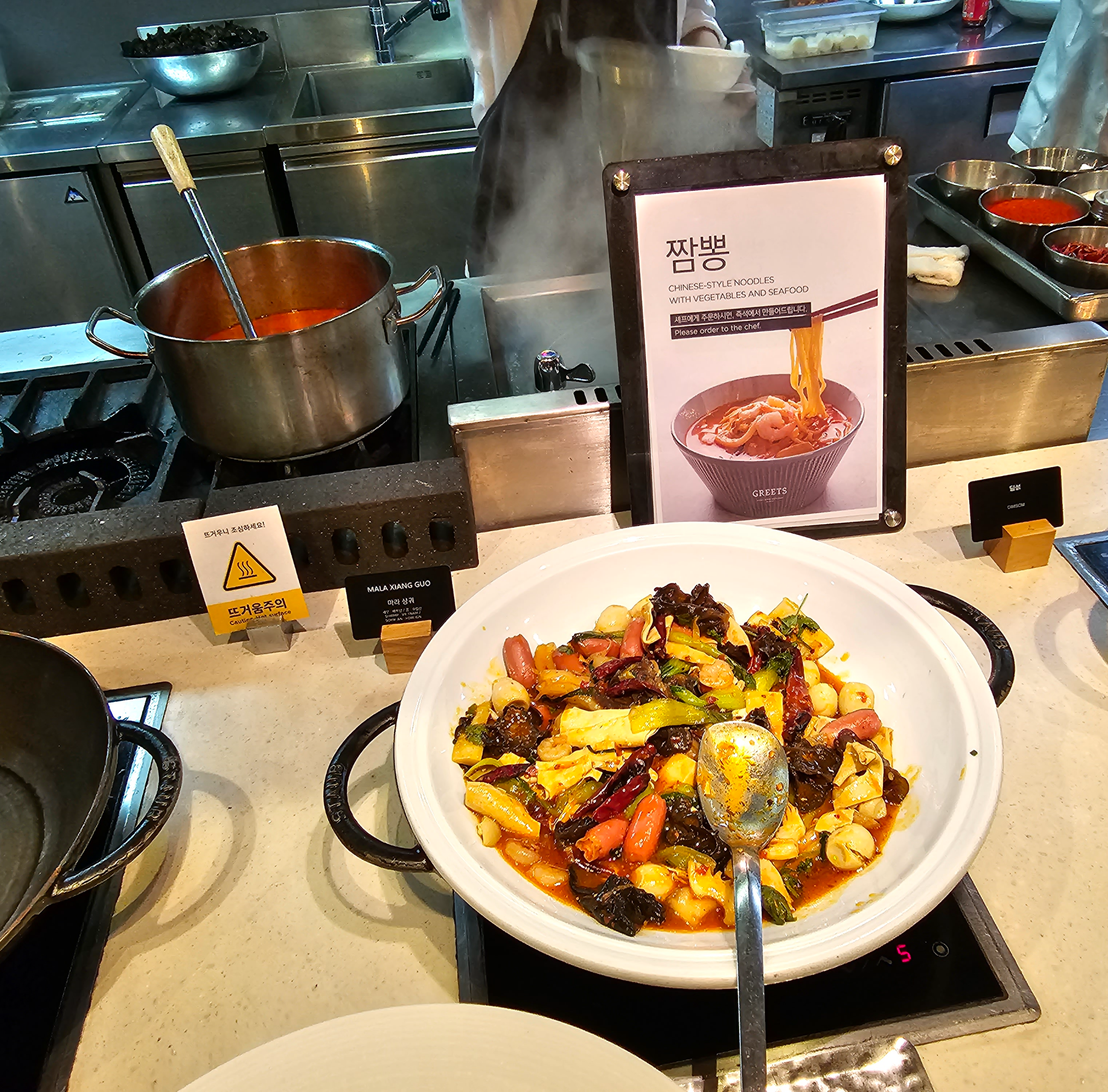 한식코너도 있었는데, 저는 따로 손이 가지는 않더군요. 이쪽에 밥이나, 수프, 국, 김치, 한식 반찬들이 있었고, 옆에는 샐러드가 있었습니다.